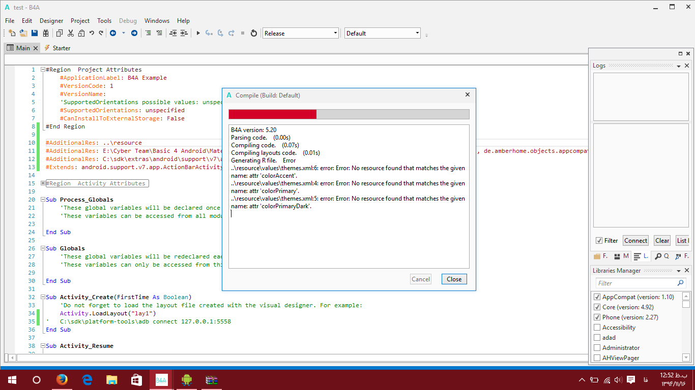 afraz aa 478 ارسال شده در 5 اردیبهشت، 2016 اشتراک گذاری ارسال شده در 5 اردیبهشت، 2016 این کارو انجام دادم نشد که نشد ولی فکر کنم باید مشکلت حل شه چون داره میگه که چنین فایلهایی رو نمیتونه پیدا کنه دوباره سعی کنید و پروژه رو ببندید و دوباره اجرا کنید ببینید چی اتفاقی میوفته در زم اکه امکانش هم هست پوسه resourse رو تو یه پوشه که فارسی باشه نذارید لینک ارسال به اشتراک گذاری در سایت های دیگر تنظیمات بیشتر اشتراک گذاری ...