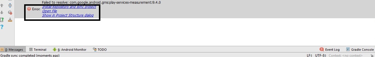 Gray Mind 913 ارسال شده در 30 خرداد، 2017 اشتراک گذاری ارسال شده در 30 خرداد، 2017 نقل قول Open SDK Manager and update Google Play services and Google Repository. Its works for me. نه ندارم البته متن بالارو پیشنهاد داده بودن برای این مشکل تو استک از SDK Manager اون دوتا رو آپدیت کنید برای آپدیت هم از پراکسی سرور سایت android.hive.ir استفاده کنید لینک ارسال به اشتراک گذاری در سایت های دیگر تنظیمات بیشتر اشتراک گذاری ...