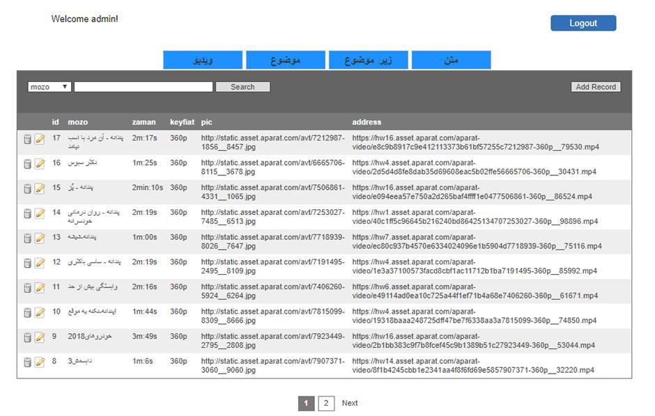 عکس پایین پنل اینترنتی جهت کنترل مطالب و کلیپ ها