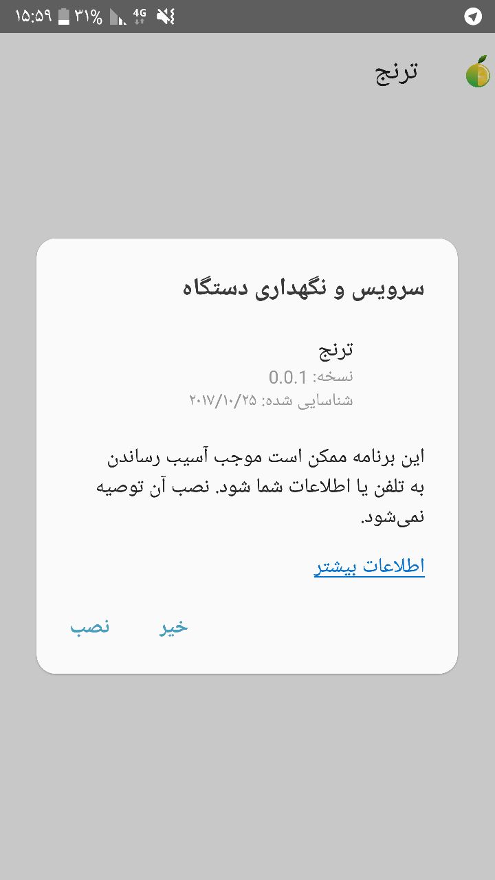 hojjatborohan 56 ارسال شده در 26 دی، 2017 سازنده اشتراک گذاری ارسال شده در 26 دی، 2017 در 22 دقیقه قبل، محمدرضا شاهپیری گفته است : عزیز برای تشخیص وصل بودن یا نبودن به اینترنت به دسترسیهای بالا هیچ احتیاجی ندارید. فقط به دسترسی ACCESS_NETWORK_STATE و ACCESS_WIFI_STATE احتیاجه. در ضمن این ایرادایی هم که گرفته این برنامه ترنجه چیه چرتو پرته همش. اگه اینجوری باشه که همه ی برنامه ها ویروس مخربن. این مشکل هر چی که هست باعث میشه برنامه بعد از 1 هفته به صورت اتوماتیک از گوشی حذف بشه .آنتی ویروس حذفش میکنه لینک ارسال به اشتراک گذاری در سایت های دیگر تنظیمات بیشتر اشتراک گذاری ...