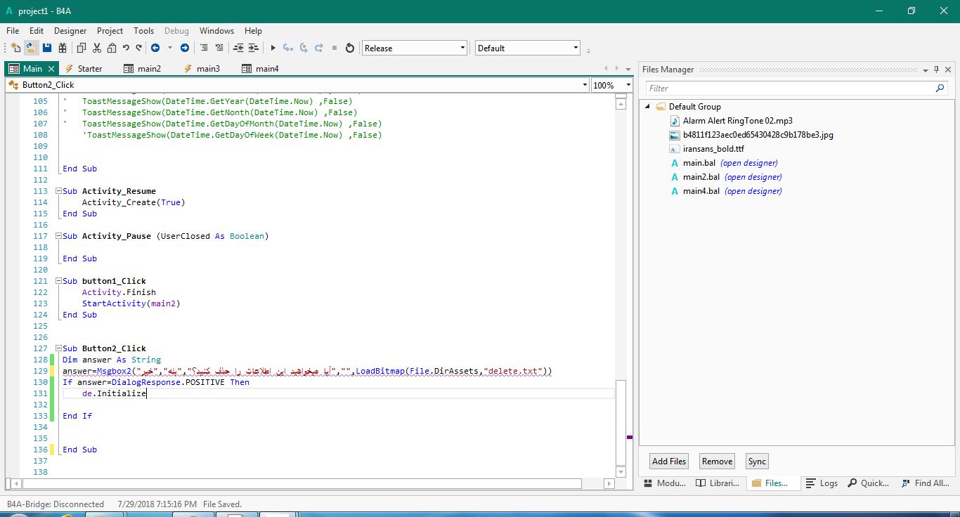 ارور در b4a