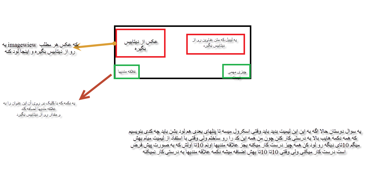 آقا من یه پنل ساختم تو یه لیبل که متن عنوانو از دیتابیس میگیر و یه امیج ویو که عکس هر مطلب رو از دیتابیس گرفته و یه امیج ویو دیگه که با کلیک بر روی آن پنل به لیست علاقه مندیها اضافه میشه