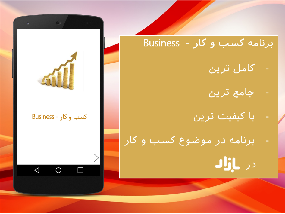 MahdiHD 1,748 ارسال شده در 15 آذر، 2015 اشتراک گذاری ارسال شده در 15 آذر، 2015 سلام برنامه جدید من : کسب و کار – Business . توضیحات و آیکون را در کافه بازار مشاهده کنید اسکرین شات ها را از لینک هایی که در پایین قرار می دهم(اسکرین شات ها در کافه بازار افت کیفیت دارند).از طراحی فلت (آیکون فونت و رنگ) استفاده کردم و ویو ها را تبدیل به متریال کردم.امکانات محتوا و ... داخل توضیحات و اسکرین شات ها مشخص است.از دوستان خواهش می کنم درباره محتوا ، ایده و گرافیک نظر خود را بنویسند و نمره بدهند.همچنین دوستانی که امکان تبلیغ این برنامه به وسیله پوش را دارند به بنده پیام خصوصی دهند! :gol: برنامه آپدیت شد!لطفا تصاویر ابتدا صفحه را به دقت مشاهده کنید و این متن را نیز تا پایان مطالعه کنید! ، تا بحال برنامه ای در این حد جامع و کامل در موضوع کسب و کار در کافه بازار وجود نداشته است! نظرات بیان گر کیفیت محتوا و رابط کاربری برنامه هستند. آموزشکامل و جامع ساخت ربات تلگرام ، معرفی سه روش به طور کامل،این آموزش به همراه چند ده آموزش دیگر در شاخه های کسب درآمد از بورس ، اینترنت ، کسب و کار خانگی،ساخت برنامه اندرویدی،معرفی کارآفرینان موفق و ویدئو های مرتبط با کسب و کار به صورت کاملا رایگان! --------------------------------------------- $ آیا به دنبال شغل دوم با درآمد میلیونی هستید؟ $ آیا می دانید می توانید به راحتی از اینترنت کسب درآمد کنید؟ $ آیا با روش های سرمایه گذاری در بورس آشنا هستید؟ $ خانم های خانه دار آیا می دانید می توانید از وقت آزاد خود در خانه کسب درآمد کنید؟ $ آیا می خواهید بدون یک خط برنامه نویسی برنامه برای اندروید بسازید؟ $ آیا می دانید چندین هزار نفر در ایران از اینترنت درآمد میلیونی دارند؟ $ آیا می خواهید از طریق بورس سرمایه خود را چندین برابر کنید؟ $ آیا می دانید می توانید از شبکه های اجتماعی که هر روز با آن ها سر و کار دارید درآمد کسب کنید؟ $ آیا می دانید می توانید از حیوانات خانگی خود کسب درآمد کنید؟ $ آیا می دانید می توانید با تدریس مباحثی که به آن تسلط دارید درآمد کسب کنید؟ $ آیا می دانید با خواندن نکات گفته شده در برنامه می توانید فروش خود را چندین برابر کنید؟ $ آیا می خواهید از این به بعد با شماره مجازی در شبکه های اجتماعی باشید و با شماره مجازی تبلیغ کنید؟ $ آیا با مغز متفکر اقتصاد ایران ، مهندس محمد طلوعی و کتاب های او آشنا هستید؟ در این برنامه ما بر خلاف برنامه های دیگر که تک تک روش ها را آن هم به طور خلاصه به شما می فروشند روش های کسب درآمد از اینترنت ،کسب در آمد از بورس ، کسب و کار خانگی و ساخت برنامه اندروید به طور کامل و جامع توضیح داده ایم و شما با مطالعه مطالب برنامه ما و سعی و پشتکار خود می توانید به درآمد رویایی خود دست پیدا کنید.به جرات می توان گفت این برنامه کامل ترین برنامه راه اندازی کسب و کار در بین برنامه های ایرانی است.کسب درآمد از روش های معرفی شده صد درصد تضمینی می باشد.مطمئن باشید ضرر نمیکنید!به طور کاملا رایگان! شما می توانید سوالات،نظرات،انتقادات و مطالب درخواستی خود را به آدرس ایمل ما بفرستید در اسرع وقت پاسخگو خواهیم بود. دوستان عزیز توجه داشته باشید که درآمد چند میلیونی در ماه حاصل تلاش و زحمت شما خواهد بود و مطمئنا بدون زحمت و تلاش هیچ موقع به درآمد رویایی خود نمی رسید بنابراین گول تبلیغات الکی که در فضای اینترنت با عنوان هایی مانند درآمد صد میلیونی در ماه ، میلیونر شدن در یک شب وعناوینی دیگر را نخورید.در واقع شما با این برنامه ها صرفا در ذهن خود به درآمد میلیونی می رسید نه در واقعیت ! بهتر است به برنامه هایی اعتماد کنید که علاوه بر داشتن کیفیت مناسب ، پشتیبانی خوب و کامل و جامع بودن با شما رو راست هستند و برای تبلیغ کار خود دروغ نمی گویند. امکانات برنامه: - امکان تغییر فونت - امکان تغییر اندازه متن - امکان جستجو - امکان اشتراک گذاری متون - علاقه مندی ها - رابط کاربری بسیار زیبا و کاربر پسند و ... برای حمایت از توسعه دهنده و آپدیت م