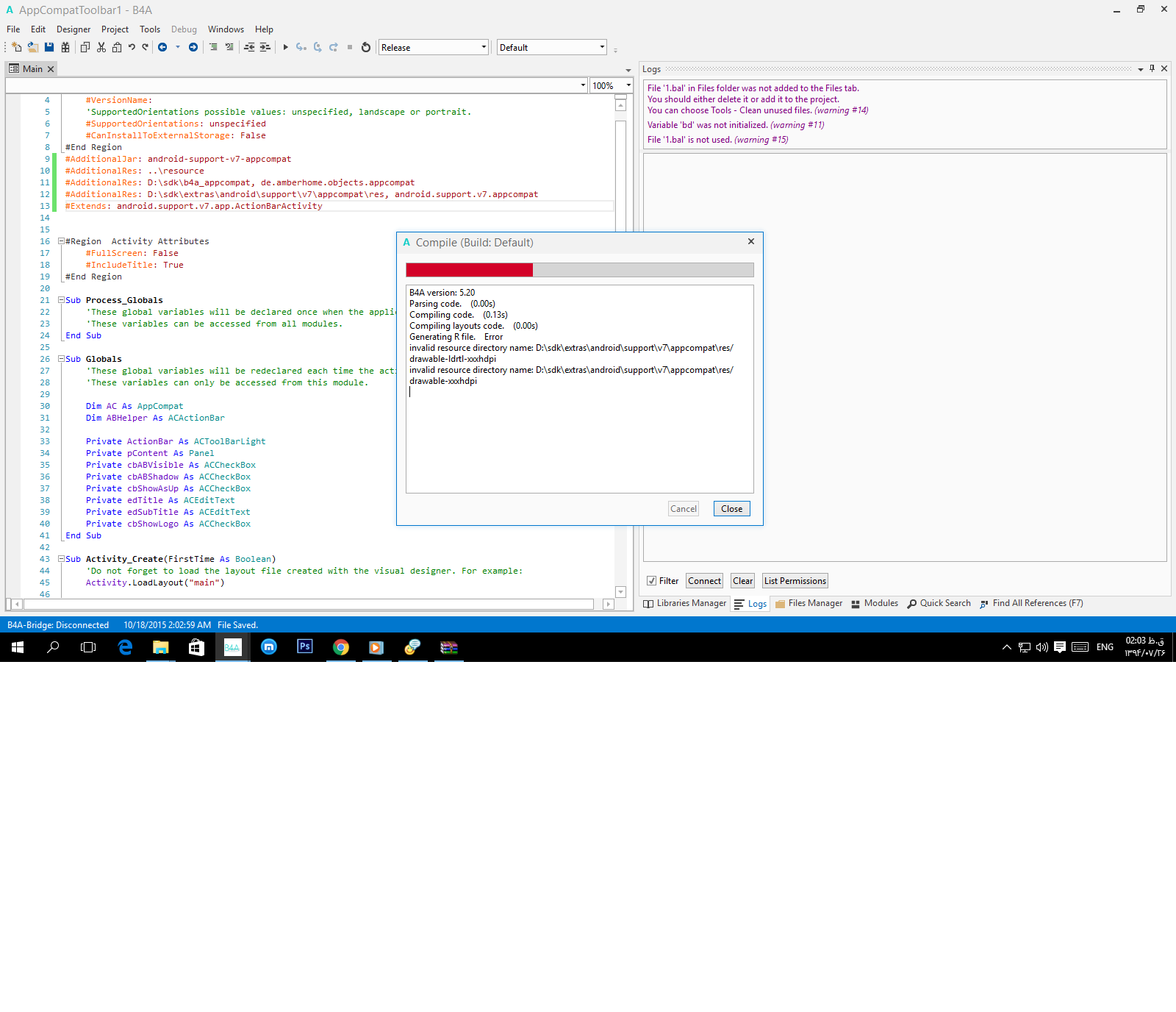 من از صبح سعی دارم که appcompat رو نصب کنم و نصب کردم.ولی موفع ران یه ارور میده.